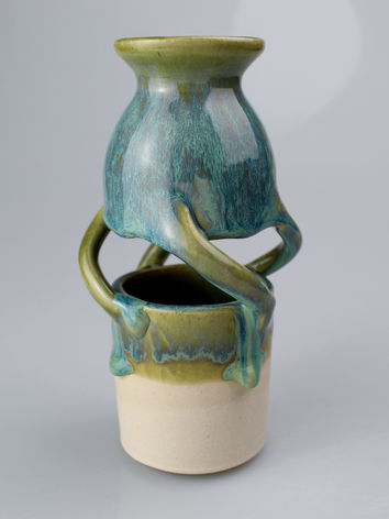 Though they can still hold water and flowers, their altered forms embody a kind of precarious beauty, a reminder that disruption can coexist with purpose. Dysfunctional grew from my curiosity about what happens when wheel-thrown precision meets the unpredictability of handbuilding, and how destruction can become a form of creation.